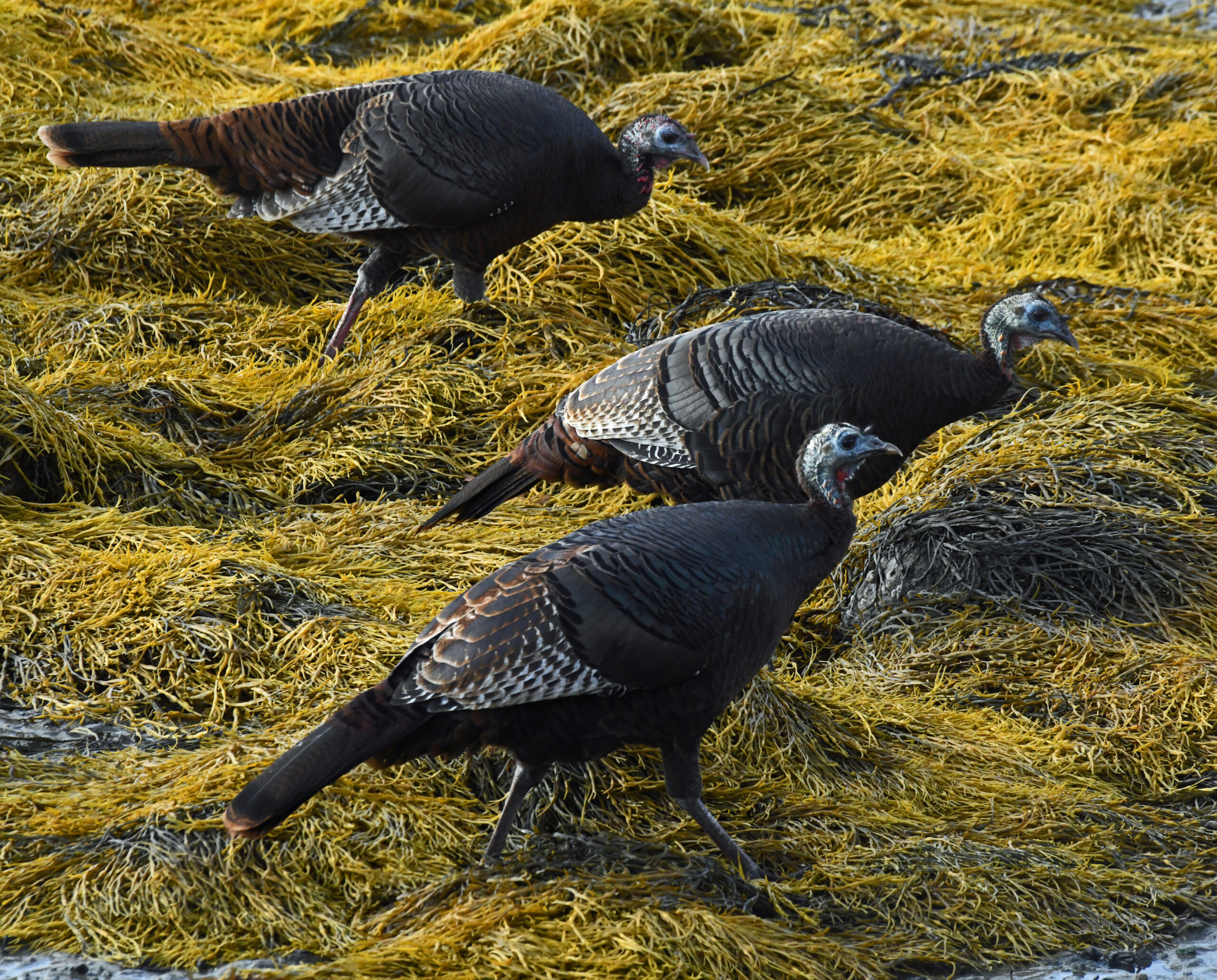 Rockweed thrives in Maine’s sheltered coves and rocky ledges where it provides an essential habitat for many marine species. At high tide, the floating fronds create an underwater forest where small fish find food and shelter. At low tide, exposed rockweed plants are draped over each other, protecting other marine species from harsh conditions. The decomposing biomass of older rockweed plants stimulates productivity in coastal food webs and forms drift lines on beaches and mudflats where shorebirds feed.